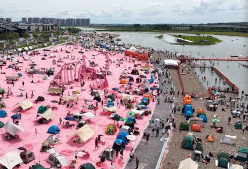 陽光下,肆季南河岸線公園的粉色沙粒折射出城市幸福的光芒;伊通河水波輕漾,勾勒出游客夏日最動人的輪廓。如今,這片水域憑借獨特景致躍升為長春頂流打卡地。