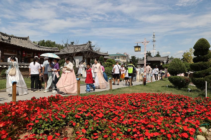 盡管暑期已近尾聲,暑氣逐漸消退,但延吉市中國朝鮮族民俗園的旅拍熱潮依舊不減。據園區運營總監朱保坤介紹,暑期期間園區日均客流量達2萬余人次,其中超70%的游客專程體驗朝鮮族服飾旅拍,旅拍已經成為延吉旅游的一張亮眼名片。