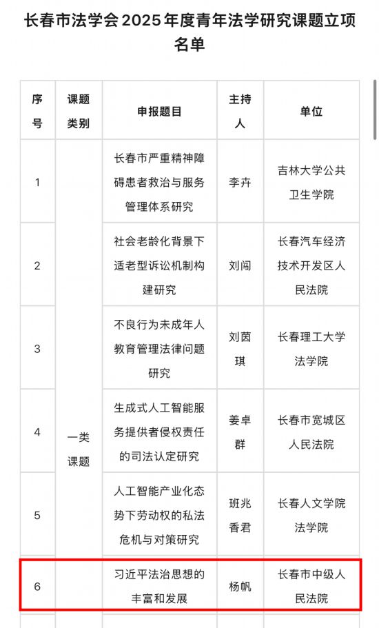 經長春市法學會評審,長春凈月高新技術產業開發區人民法院參與的2025青年法學研究課題,符合《關于開展2025年度青年法學研究課題工作的通知》(長法學發〔2025〕2號)規定的申報條件,現予以立項。 課題的成功立項,是凈月法院將司法實踐與理論研究有機結合的生動印證。下一步,凈月…