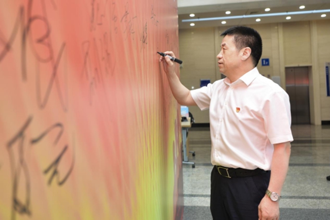 升國旗暨重溫入黨誓詞活動前,吉林省稅務局組織全體黨員進行“開啟新征程我來報到”承諾踐諾簽字活動。在黨的生日來臨之際,全體黨員在簽到板上鄭重寫下自己的姓名,向組織報到并鄭重承諾:“在踐行‘兩個維護’,爭做‘三個表率’的方陣前有我;在履行職責義務,發揮先鋒模范作用的隊伍里有我;在推進稅收現代化,服務地方經濟發展的實踐中有我……”
