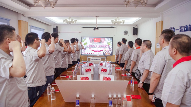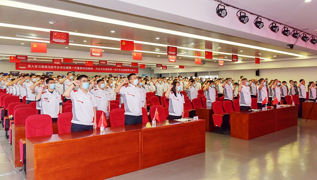 7月1日,在中國共產黨成立100周年之際,中國一汽黨委萬名黨員重溫入黨誓詞、千名新黨員入黨宣誓儀式在五大生產基地13座城市100個會場通過視頻連線方式同步舉行。中國一汽黨委領導班子成員徐留平、邱現東、王國強、雷平、全華強、劉亦功出席儀式。中國一汽黨委副書記、董事王國強主持儀式。