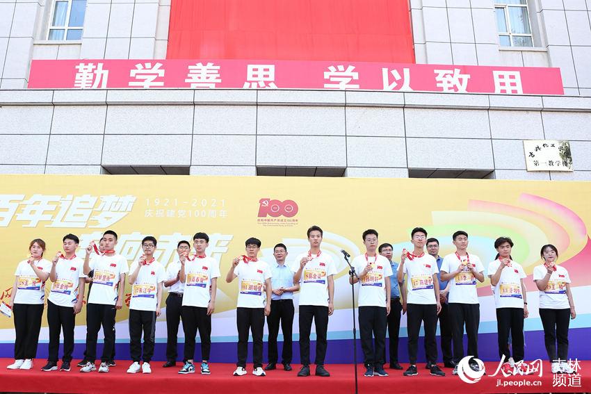 上午9時,吉林化工學院黨委副書記尉民宣布挑戰賽開始,并向學生代表傳遞火炬。同學們途徑紅色黨史長廊、校史長廊、紅歌長廊、黨史名言和人物長廊,回顧黨的歷史、展望未來,帶著對未來的美好期望沖向勝利的終點。