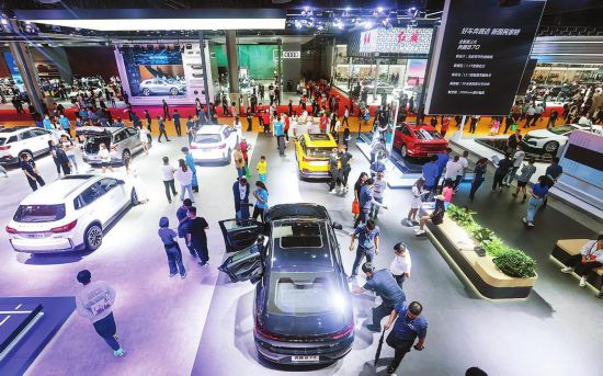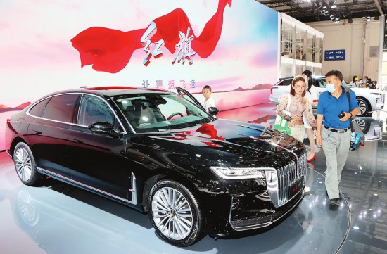 圖①:7月9日,在第18屆中國(長春)國際汽車博覽會上,中國一汽紅旗出產的H9,HS9系列憑借高端大氣的外形,吸引了眾多車迷的目光。本報記者丁研攝