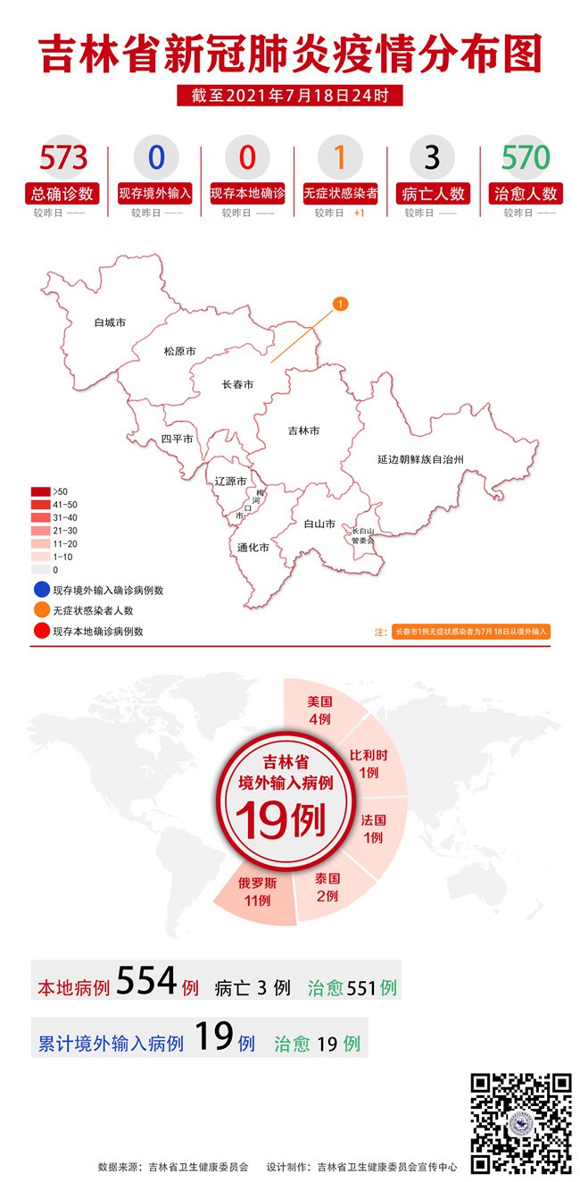 7月18日吉林省新增1例境外輸入無癥狀感染者