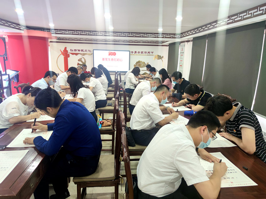 “‘墨筆生香憶初心’活動中,我們準備了筆墨,黨員們可以通過臨摹‘沉浸式’地重溫入黨誓詞,大家寫完都拍照發朋友圈,在筆墨書香間感悟初心使命!壁w南介紹,該黨史學習教育基地在課程菜單中設置理論傳承、紅色成長、青春實踐三種不同風格的教學體驗方式,供黨員干部群眾自愿參加、自主選擇。