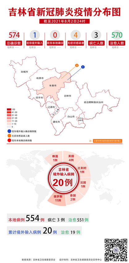 8月2日0-24時,吉林省無新增確診病例和無癥狀感染者。