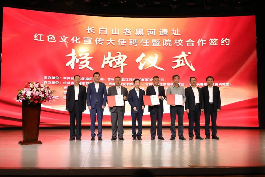 儀式緊密結合東北抗聯歷史和東北抗聯名將楊靖宇將軍、王德泰將軍的英雄事跡,傳承紅色精神,聘任馬繼志、趙聆實、張彥夫為“長白山老黑河遺址紅色文化宣傳大使”;將為楊靖宇將軍精心創作的歌曲《楊靖宇之歌》贈予烈士后人——楊靖宇將軍次孫馬繼志;以《抗日名將王德泰》書中記載王德泰軍長在老黑河養傷,少年營的孩子們給軍長抓蝲蛄補身體的歷史為背景,聯合長春光華學院現場簽約創作紅色電影《老黑河里的少年營》。
