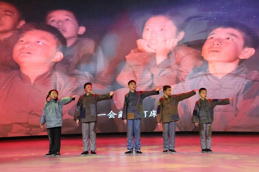 池南區青少年演唱歌曲《老黑河里的少年營》。長白山池南區委員會供圖