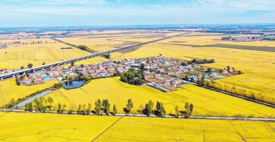 近年來,長春市稻漁綜合種養發展迅速,真正做到了“一地雙收、一水兩用”,發揮了增漁增收、節地節水、循環高效、綠色生態的疊加效益。圖為德惠市菜園子鎮蟹稻田,滿眼金黃,美不勝收。ㄓ浾 石雷 攝)