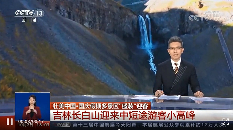 “吉林長白山的紅葉谷里,滿山紅遍,一束丹楓……”國慶黃金周的第一天,《新聞聯播》對全國各地的美景進行盤點,吉林紅石國家森林公園紅葉繽紛的景色亮相。
