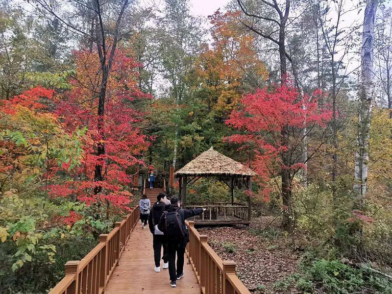 紅石國家森林公園“紅葉長廊”綿延百里,漫山紅葉,燃燒似火,被譽為北國的“紅葉王國”!笆弧秉S金周,紅石國家森林公園再次迎來旅游小高峰,景區紅葉以面積大、分布廣、品種多、觀賞周期長等特點獲得游客的青睞。