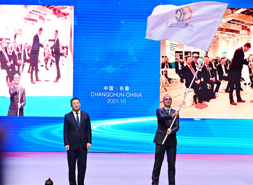 會議期間還舉行了中德汽車大會會旗交接儀式,長春市市長王子聯將會旗交接給柏林市,也標示著第六屆中德汽車大會將在柏林落地,綻放異彩。