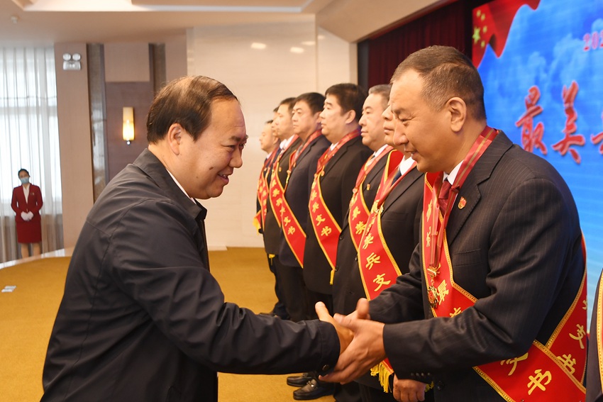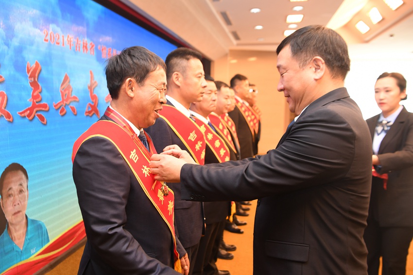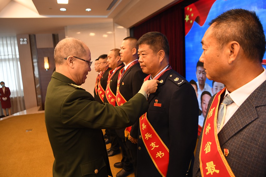 吉林省退役軍人事務廳廳長黎海濱為“最美兵支書”頒發證章