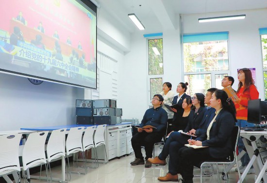 11月12日,長春大學旅游學院組織師生收看中共中央新聞發布會,了解黨的十九屆六中全會精神。(記者 王萌 攝)