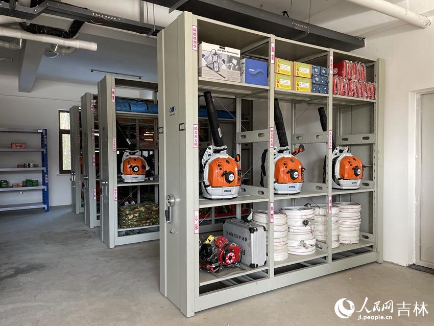 長白山自然保護管理中心白河保護管理站防滅火裝備儲備庫內,裝備整齊有序擺放。人民網 李思玥攝