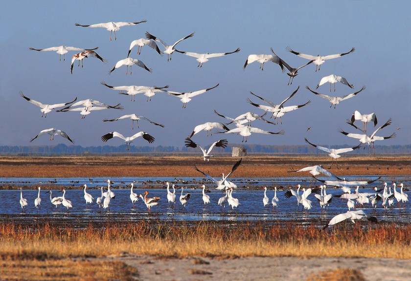 吉林中西部地區地域遼闊,湖、泡密布,濕地面積廣闊。多年來,吉林省先后建立了多個濕地保護區,并實施了河湖連通、濕地引水等多項保護工程,有效保護了吉林中西部濕地野生動植物資源,珍稀瀕危種群得到持續恢復與發展,白鶴、東方白鸛、天鵝、白頭鶴等珍稀瀕危濕地野生鳥類在吉林停歇覓食數量持續增長。去年進入10月份,吉林中西部各濕地保護區,陸續迎來大批候鳥,它們在廣袤的濕地上,或飛翔,或覓食,或追逐……