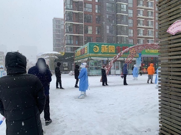 長春市民冒著大雪有序排隊進行核酸檢測。鄭智文攝