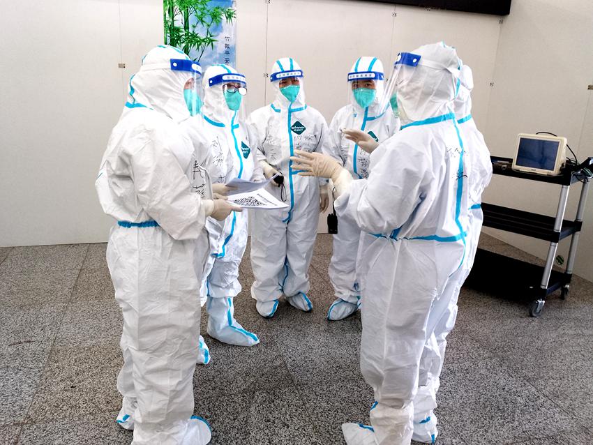 “哪里有危險,哪里就有黨員!睘跏Y介紹,各醫療隊臨時黨支部紛紛開展重溫入黨誓詞等活動,各隊隊員還鼓勵動員病區患者志愿者,協助醫護及工作人員清掃轉運垃圾、分發盒飯等,在黨組織的號召下,大家又“電力十足”。