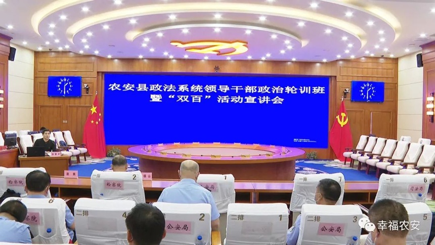 為不斷提高政法干部業務素質和嚴格公正文明執法能力,打造一支政治過硬、本領高強的新時代政法干部隊伍,6月15日,農安縣舉辦全縣政法系統領導干部政治輪訓班暨 “雙百”活動宣講會。