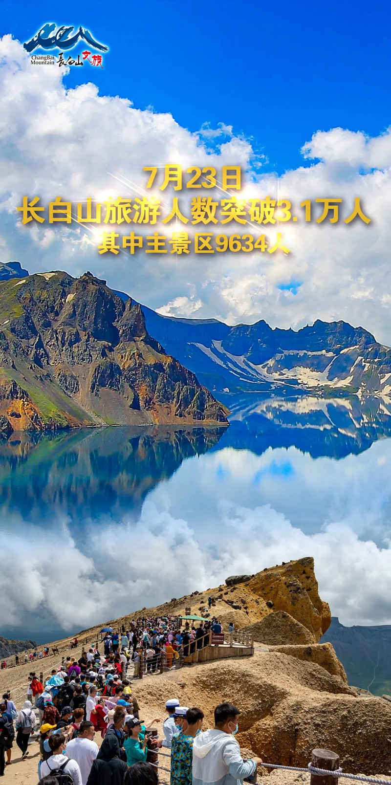 人民網長春7月23日電 (李洋)據長白山管委會消息,7月以來,長白山共接待游客337770人。僅7月23日一天就接待游客3.1萬人,其中主景區9634人,再創長白山加快推進旅游業恢復專項行動以來的新高。