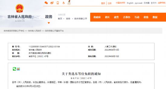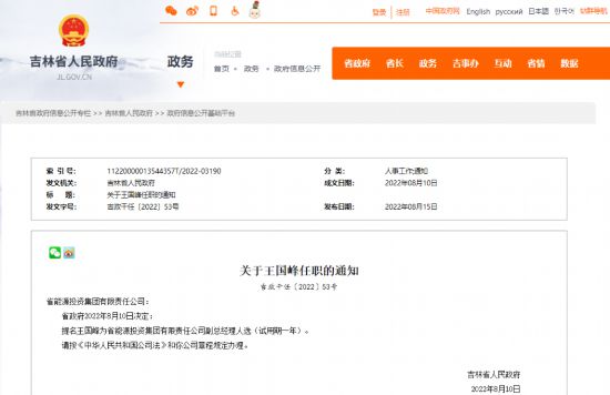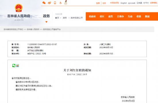 劉向濤為長白山保護開發區管理委員會副主任(試用期一年)。