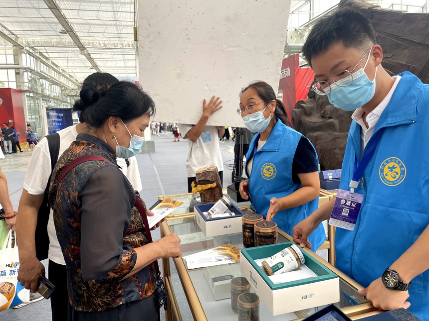 參觀群眾在了解桑黃的藥用價值。人民網 李思玥攝