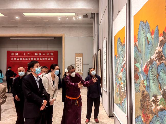 吉林省政協常委、省民族畫院院長恒紹介紹,吉林省民族畫院深深地扎根吉林這片藝術創作沃土,堅持以人民為中心的創作原則,本次展覽精心創作了總計270幅,其中國畫63幅、油畫56幅、水彩22幅、其他版畫木刻13幅,書法作品116幅,吸引了廣大群眾前來參觀。