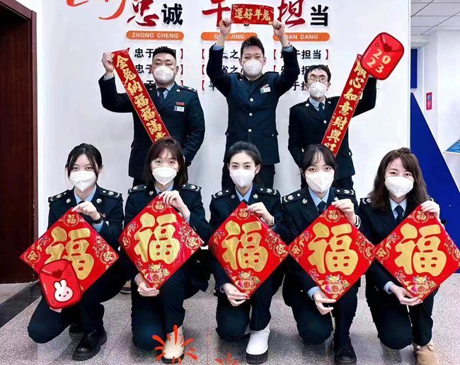 長春市朝陽區稅務局辦稅服務廳的青年干部,堅守納稅服務一線崗位,為納稅人提供優質、高效、便捷的辦稅繳費服務,以飽滿的熱情和良好的精神狀態喜迎農歷兔年春節。