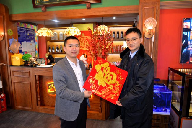 遼源市西安區稅務局走訪轄區餐飲商戶,為納稅人解決涉稅問題、宣傳增值稅最新政策并送上新春祝福。