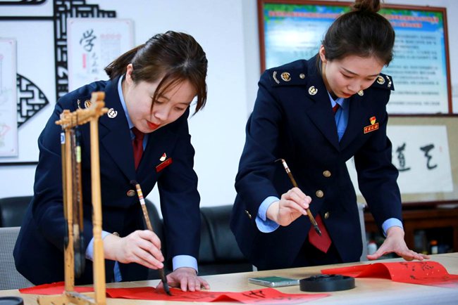 國家稅務總局琿春邊境經濟合作區稅務局幾名青年稅務干部開展寫春聯活動,點點墨色躍然嫣紅紙上,既是中華兒女對新春佳節的熱切期盼,也彰顯出青年一代積極傳承中華優秀傳統文化的鮮明態度。