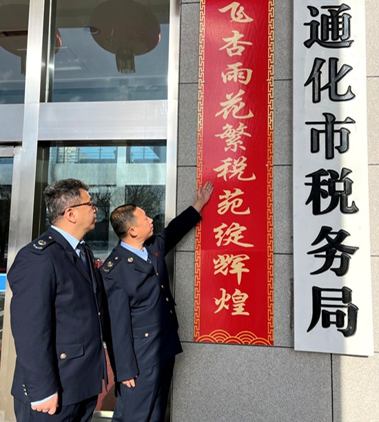 國家稅務總局通化市稅務局干部貼春聯喜迎新年,同心筑夢謀發展,將以飽滿的精神狀態書寫通化稅務人的奮進之筆,描繪通化稅收事業高質量發展的多彩畫卷。