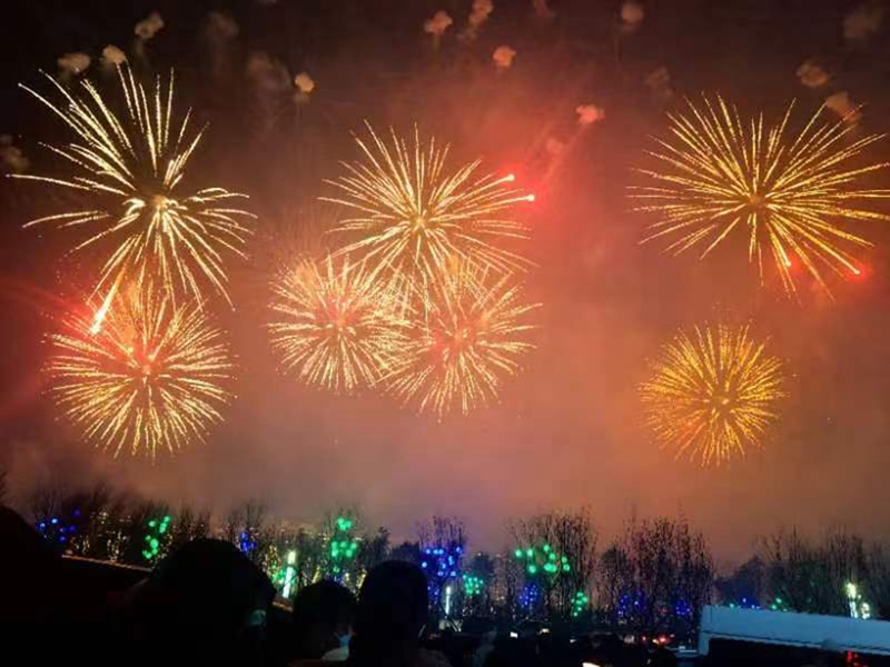 “為了焰火燃放活動安全有序進行,我們在春節前就做了充分細致的準備工作,為使活動達到最佳的燃放效果,我們特邀請專業燃放公司,采用電遙控方式,與現場音樂相融合,為大家獻上一場視覺和聽覺盛宴?!本排_區相關負責人介紹,本次活動共燃放9.8萬發高空禮炮彈,布置了21處特效煙花點位。