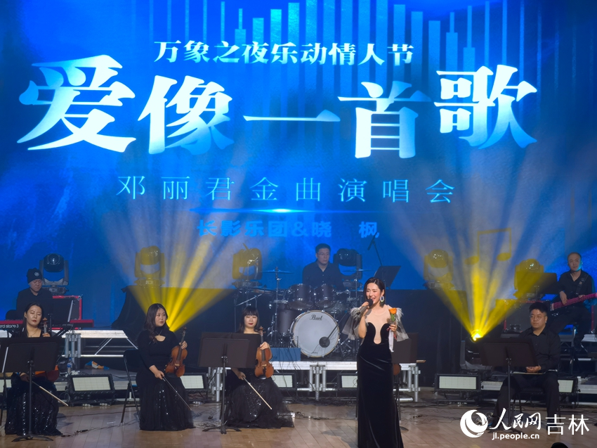 人民網長春2月14日電 (馬俊華)“你問我愛你有多深,月亮代表我的心”“任時光匆匆流去,我只在乎你”……14日19時,《愛像一首歌》鄧麗君金曲演唱會在長影音樂廳奏響。長影樂團輕音樂團攜手青年歌手曉楓,用膾炙人口的經典旋律,陪伴觀眾共度了一個浪漫甜蜜的夜晚。