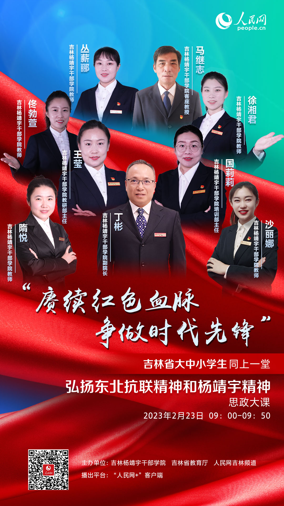 人民網長春2月22日電 (馬俊華)為深入貫徹落實黨的二十大精神,弘揚東北抗聯精神和楊靖宇精神,2月23日上午9時,由吉林楊靖宇干部學院、吉林省教育廳、人民網吉林頻道共同主辦的“賡續紅色血脈 爭做時代先鋒”專題思政課將在“人民網+”客戶端準時開課。