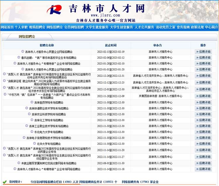 依托吉林市人才網舉辦網絡招聘活動網頁截圖