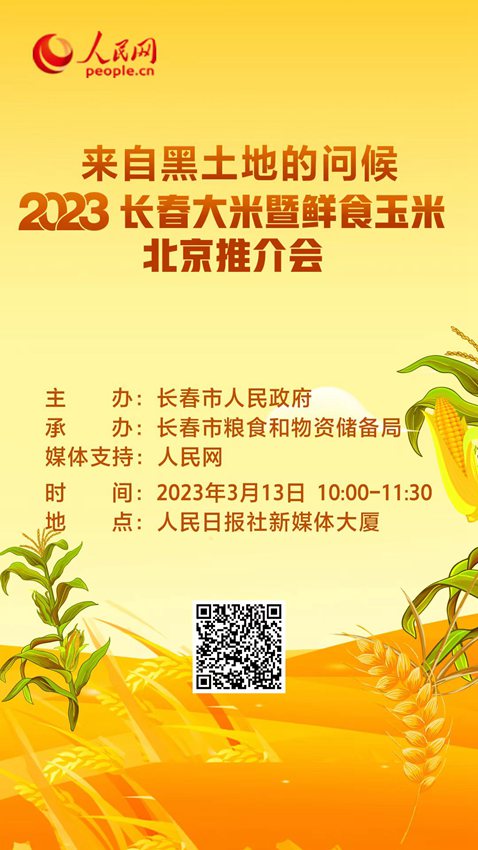 人民網長春3月11日電 (馬俊華)3月13日,由長春市人民政府主辦、長春市糧食和物資儲備局承辦的2023長春大米暨鮮食玉米北京推介會將在人民日報社新媒體大廈舉行。