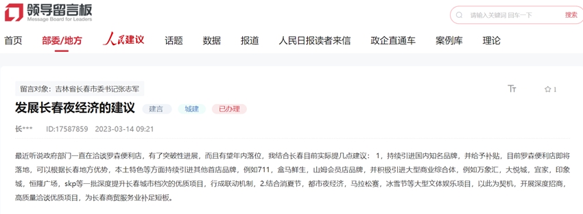 有回音丨網友為夜經濟發展建言 長春市回復:多措并舉打造“新興消費城”
