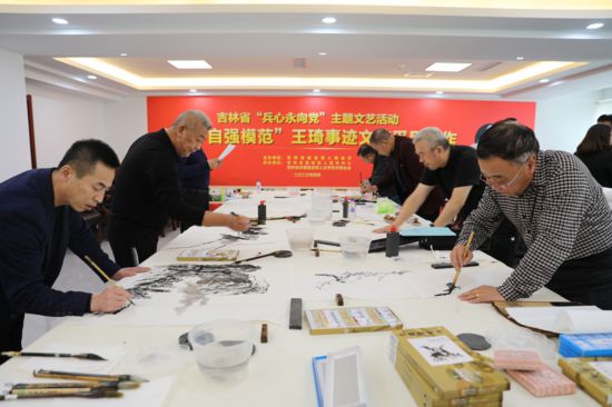 活動期間,文藝工作者共創作書法、美術、攝影等各類藝術作品80余件。各類藝術作品經評審后,遴選優秀作品將于今年“八一”期間在吉林省“兵心永向黨”主題文藝作品展上向全社會展出。
