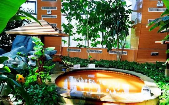 看點:酒店內有小鹿穿行峽谷,讓游客體驗長白山的自然魅力。步入酒店,猶如進入藝術博物館,全透明天空泡池,讓每位游客都可以坐擁無邊山河雪景、落日余暉、星河交織。(池南溫泉養心地)