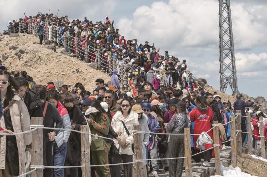 長白山景區人聲鼎沸、熱鬧非凡