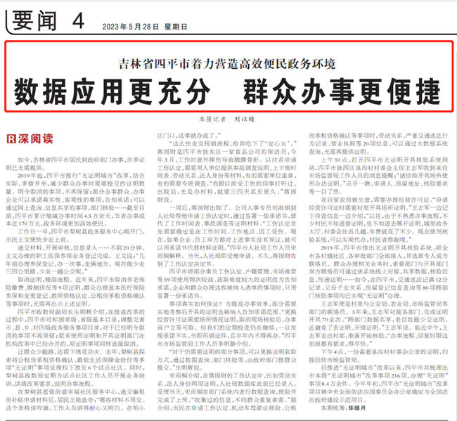 人民日報關注吉林:數據應用更充分 群眾辦事更便捷