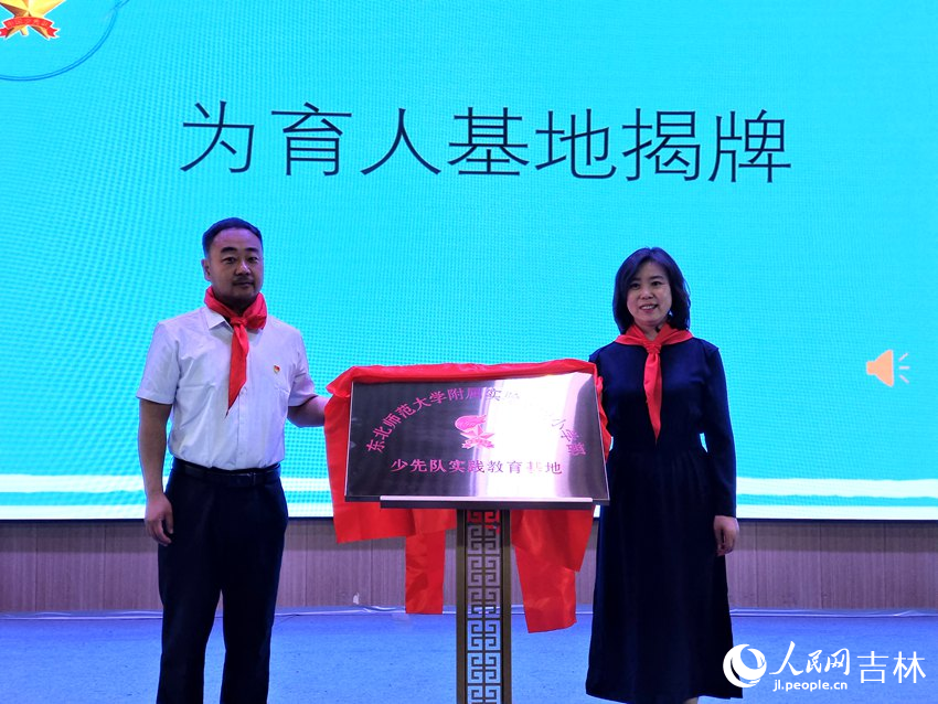 活動中,長春市革命烈士陵園與東北師范大學附屬實驗學校小學部簽訂育人基地協議,并為東北師范大學附屬實驗學校小學部少先隊實踐教育基地揭牌。為發揮紅色教育資源優勢,搭建學習、體驗平臺,實現教育資源、紅色文化共享共育打下堅實基礎。