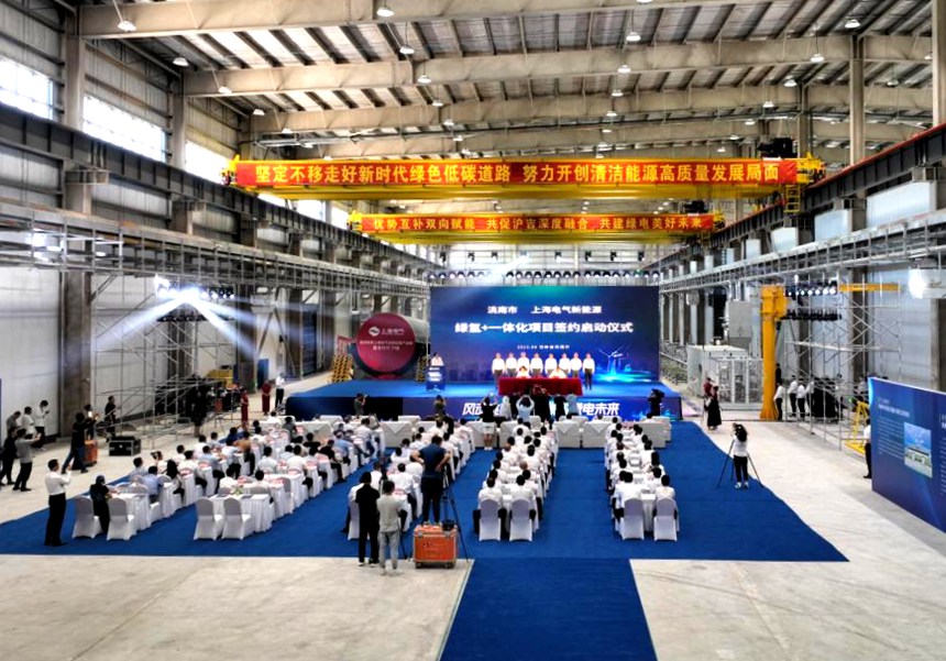 6月30日,上海電氣洮南風電產業園首支葉片下線儀式、整機裝備制造掛牌儀式暨綠氫+一體化項目簽約啟動儀式在洮南成功舉行。