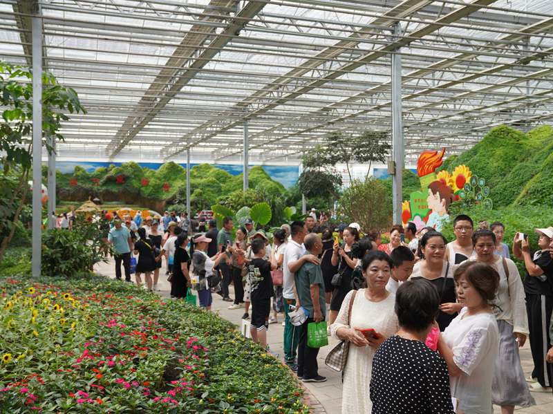 “景觀小品大多數以生姜擺放出的假山為背景,配以各色植物拼湊搭配的瑰麗風景,許多標志性建筑和造型都是用五谷雜糧粘貼?!闭箯d負責人王偉介紹,他們還運用了扦插、雕刻、繪畫等創意農業手法展現主題展板的深刻內涵。