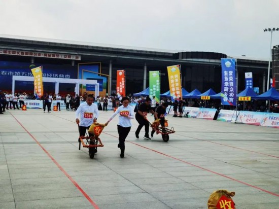 推著小推車運糧食、左手提只雞右手提只鴨跑回娘家、把一人高的大輪胎翻滾到終點……精彩刺激的趣味運動項目引得不少市民游客駐足觀看?!斑@幾年,只要農博會開幕了,我和我老伴兒就準時來看農民趣味運動會,你看這比賽,多有意思?!遍L春市民王阿姨被這些趣味項目逗得合不攏嘴。