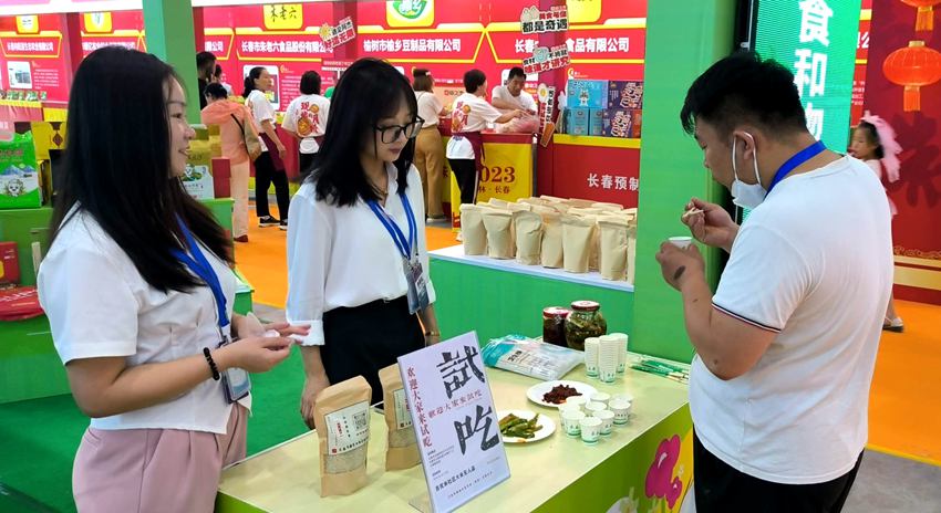 “長春大米”展位還精心設置了贈食贈飲區,香噴噴的大米飯配上可口的小咸菜,吃完之后還可以領取一份現磨米大禮包回家,現場還有剛剛煮好的鮮食玉米和現榨的玉米汁供大家品嘗。