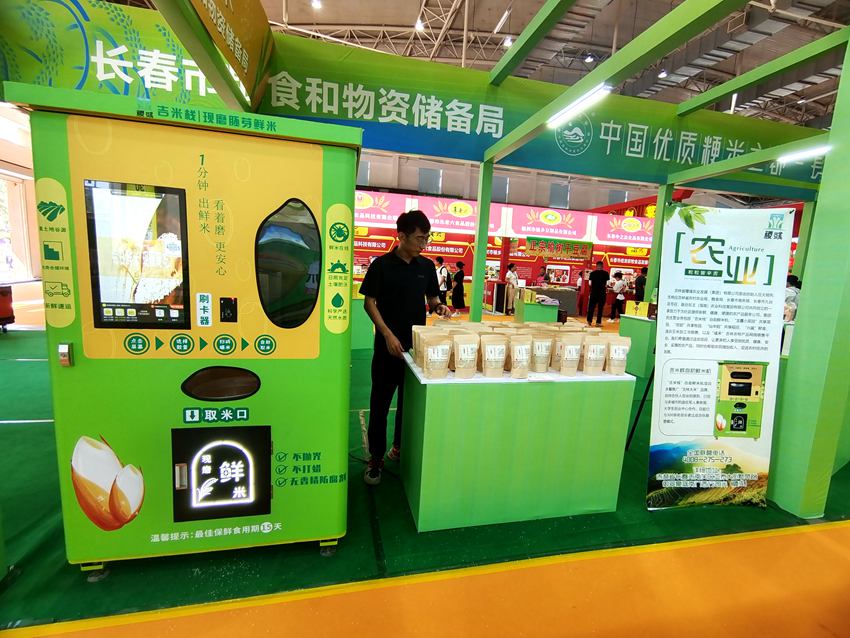 走進“長春大米”展位,各式各樣的大米和玉米產品讓人目不暇接,此次長春市糧儲局攜手域內糧食企業,帶來數百個產品參會。其中,一家大米企業帶來的現磨胚芽米的柜式機器吸引了現場眾多游客的目光。