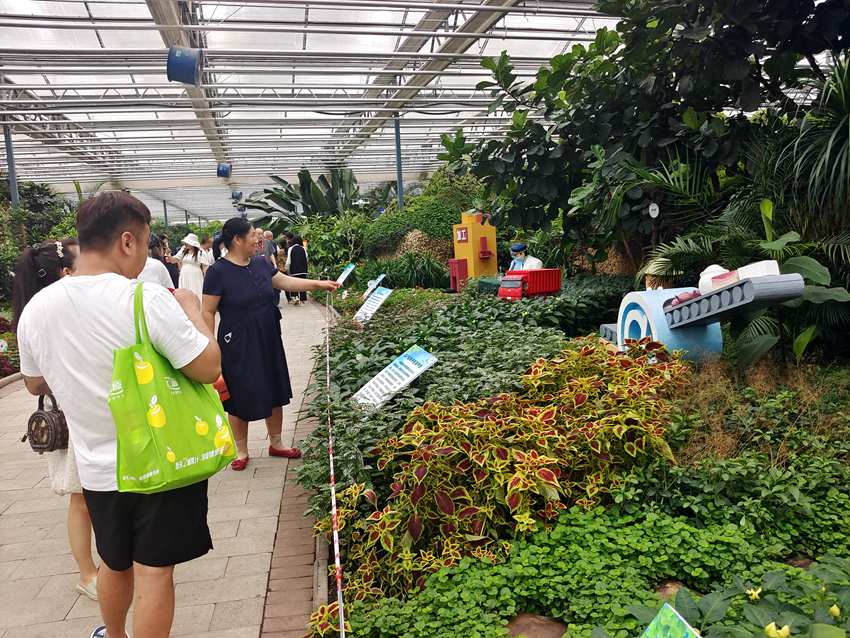“孩子特別喜歡這個展廳,每年都有新的變化,都有新的內容,孩子也能在這里學到不少課本以外的東西,只要這里有展會我都會帶他來看看?!笔忻裢跖吭诿拷M景觀前都會為孩子拍照留念。