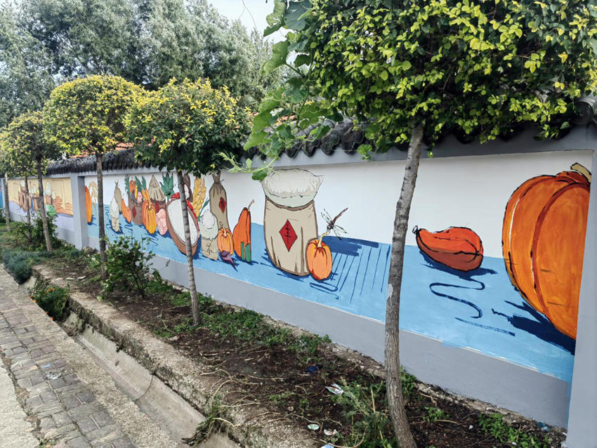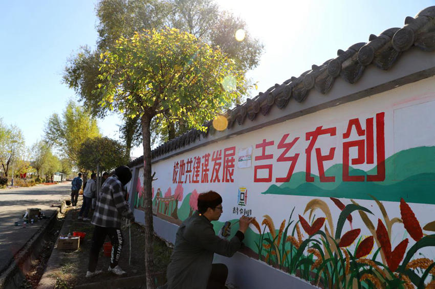舒蘭市三梁村“吉鄉農創園”:校地合作彩繪文化墻為鄉村振興“添彩”
