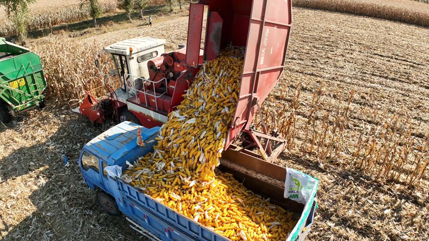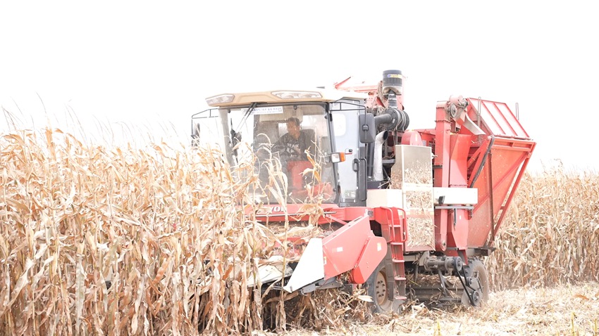 金秋十月,在松原市寧江區各村田間地頭里,玉米、水稻等農作物綴著肥碩飽滿的果實,大型收割機正在作業,呈現出一片繁忙的秋收景象。